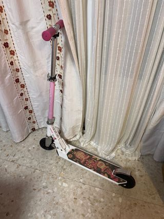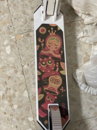 Patinete de la marca Oxelo con un divertido diseño. - Ideal para niñas de 7 a 10 años. - Color rosa y negro. - Diseño con personaje de búho. Se ha usado poco.Se entegará limpio.