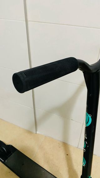 Patinete de la marca Oxelo, diseñado para niños. Cuenta con un manillar negro y puños de color azul. - Manillar negro. - Puños de color azul. Precio negociable.