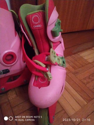 Patines Oxelo usados pero en uso para niña, talla 32-34. Incluye dos patines y protecciones (rodilleras y coderas). - Patines ajustables. - Protecciones acolchadas. - Ideales para principiantes.
