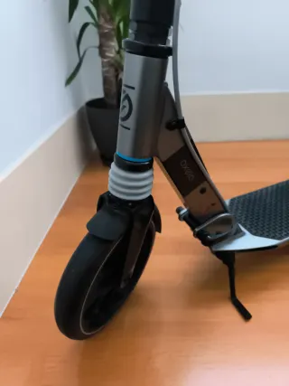 Patinete Oxelo Town 9 en buen estado. - Color gris y negro. - Plataforma antideslizante. - Ruedas de goma. - Facilidad de uso de plegado y desplegado para optimizar el espacio. - Facilidad de transporte por sus 7 kilos ideal para distancias medias. - Es ajustable. - Doble suspensión para absorber las vibraciones. - Con guardabarros trasero y delantero, perfecto para que no se ensucie.
