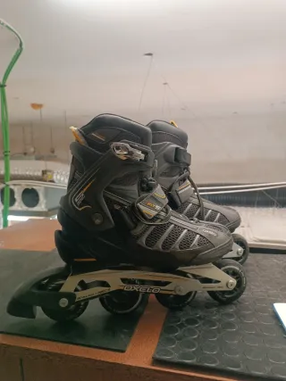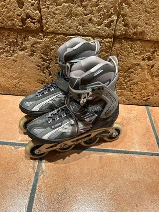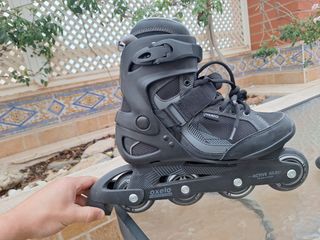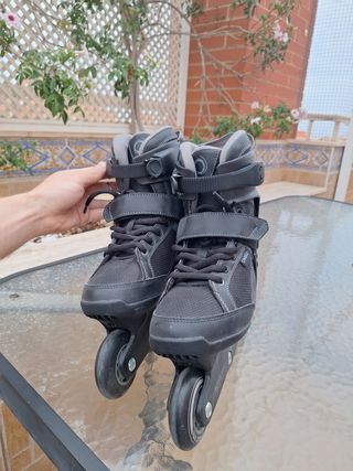 Patines en línea Oxelo, talla 41 prácticamente nuevos. Ideales para principiantes. - Diseño negro y gris, estética moderna. - Sistema de ajuste adaptable. - Ruedas en buen estado. - Incluye un par de patines.