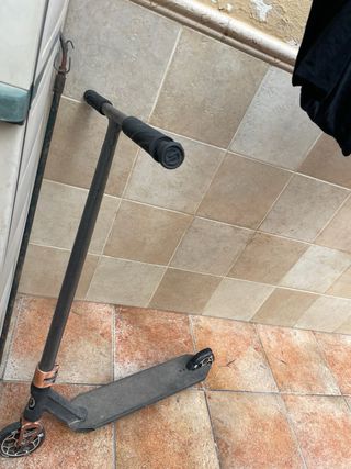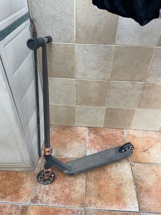 Patinete Oxelo Freestyle en perfecto estado. El patinete tiene 4 meses de uso, está como nuevo pero con signos de desgaste que se pueden apreciar en las fotos. Lo entrego con la caja original. No tiene ninguna holgura ni ningún ruido extraño. - Aguanta 100kg - Peso: 1'2kg - Color negro con detalles bronce. - Ideal para principiantes y aficionados.