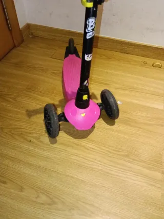 Patinete infantil de tres ruedas en color fucsia. - Diseño de tres ruedas para mayor estabilidad. - Manillar ajustable en altura. - Plataforma antideslizante.