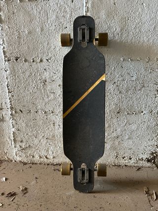 Monopatín longboard Oxelo en excelente estado, con muy poco uso. - Diseño con franja central. - Ruedas negras.