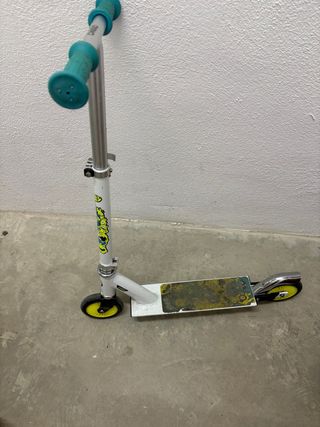 Patinete de la marca Oxelo. - Mango un poco roto pero va bien - Ruedas delanteras y traseras. - Plataforma para los pies.