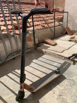 Monopatín (skateboard) con atractivo diseño. Para niños de 8 a 12 años. Tamaño 7'6". En muy buenas condiciones. Marca Oxelo. Parte principal 100% madera. Ejes de poliéster+aluminio. Ruedas de poliuretano y rodamientos de acero (le pusimos unos nuevos de mejor calidad que los que llevaba). Medidas: 78cm de largo 20cm de ancho 13cm de altura (suelo a tabla) 8'85mm grosor tabla Más artículos en mi perfil. Hago lotes para rentabilizar gastos de envío. Venta en persona o envíos a través de Wallapop.