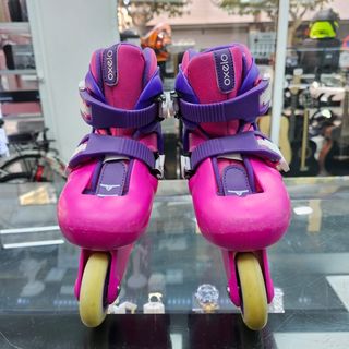 Patines en línea Oxelo Play, talla 28-30. Ideales para principiantes. - Color rosa y morado. - Sistema de cierre con hebilla y velcro. - Ruedas en buen estado. - Están prácticamente nuevos.