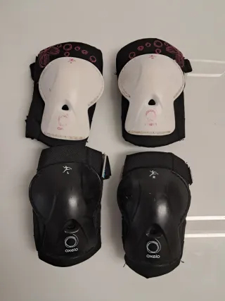 Set de protecciones para patinaje o skate, ideal para niños. Incluye coderas y muñequeras Todas XS 2 € la pareja 6 € todo (2 pares de coderas y 2 de muñequeras) - Diseño ergonómico. - Cierre de velcro ajustable. - Marca Oxelo.