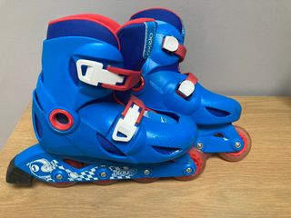 Patines infantiles en línea regulables para los números 30, 31 y 32. Azules y rojos. En muy buen estado. Hago envíos.