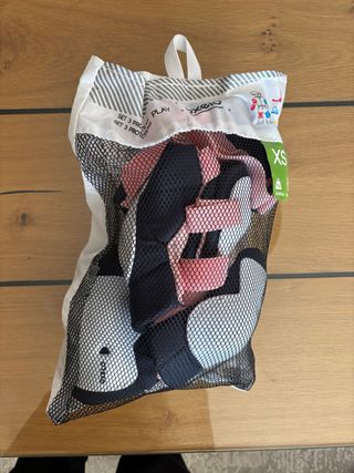 Set de protecciones Oxelo para patinaje en talla XS. Incluye rodilleras, coderas y muñequeras. - Talla XS. - Color rosa y negro. - Usadas 1 sola vez