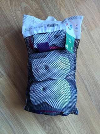 Set de 3 protectores de la marca Oxelo, talla S. - Incluye rodilleras, coderas y muñequeras. - Cierre con velcro ajustable. - Malla transpirable. Solo se han usado las coderas un par de veces.