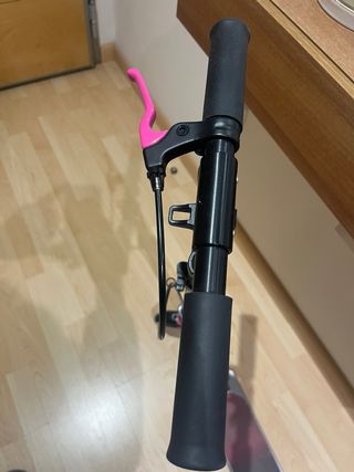 Patinete Oxelo en color gris y rosa. En buen estado, ideal para desplazamientos urbanos - Manillar con puños negros. - Freno de mano rosa. - Plegable para facilitar su transporte