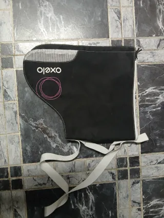 Bolsa de transporte para patines en línea pequeños. - Color negro. - Cierre de cremallera. - Asas de transporte blancas. - Detalle de logo Oxelo en color rosa.