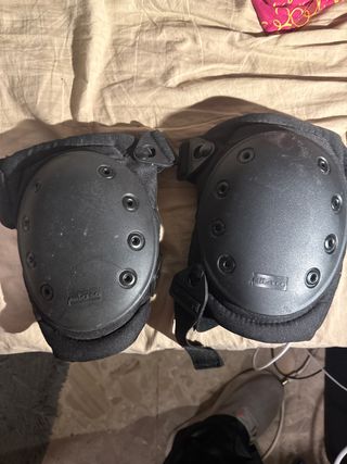 Protecciones para rodillas de la marca Mil-Tec, diseñadas para adultos. - Color negro. - Diseño con placas protectoras. - Cierre de velcro ajustable.