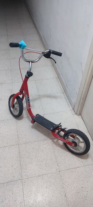 Patinete infantil de la marca WheelTock, color rojo. Está en buenas condiciones, aunque presenta algunos signos de uso. Las ruedas son de tipo bicicleta y se pueden hinchar, es muy estable y lleva frenos tipo bicicleta. Es ideal para los niños, la plataforma es bastante ancha, para que estén más cómodos. Ya no sé encuentran patinetes de este estilo, es muy duradero y fiable. - Marca: WheelTock - Color: Rojo - Ideal para niños
