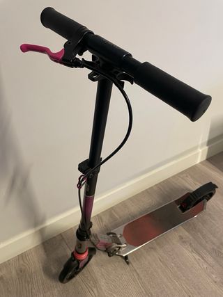 Patinete de la marca Oxelo en color rosa. Ideal para desplazamientos urbanos. Patinete conservado en muy buen estado, aunque en la foto se vea un poco sucio, en cuanto se limpia parece como nuevo, ideal para un/a niña/o de entre 8 a 12. EL PRECIO ORIGINAL ES DE 80 EUROS - Puños de goma para un mejor agarre. - Ruedas de color rosa. - Plataforma con diseño. - Manillar ajustable.