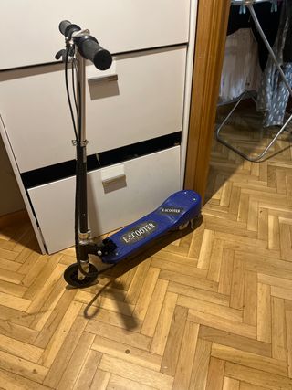 Patinete para niñ@s y adult@s con altura regulable. Está en buen estado, con algunas marcas de uso. - Diseño plegable para facilitar su transporte y almacenamiento. - Manillar regulable en altura. - Ruedas grandes para una conducción suave. - Solidoy lijero