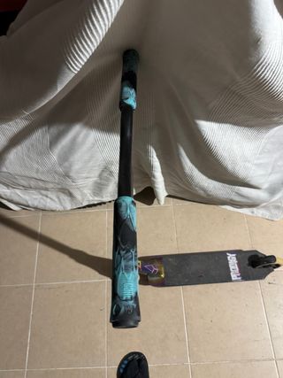 🛴 Patinete freestyle MONSTER – Aluminio, muy resistente Vendo patinete de freestyle en muy buen estado, ideal para skatepark, rampas y street. Modelo Monster, estructura de aluminio reforzado, ligero pero muy resistente. 🔧 Características: • Tabla ancha de aluminio con lija antideslizante • Manillar tipo BMX reforzado • Ruedas de núcleo metálico iridiscente (alta calidad) • Freno trasero metálico • Rodamientos suaves, gira perfecto • No tiene holguras ni ruidos raros 📌 Estado: Usado, con marcas normales de uso (ver fotos), pero mecánicamente perfecto. Listo para rodar, no hay que hacerle nada. 👦 Ideal para: Niños, adoles