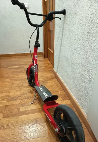 Patinete de dos ruedas para niños. - Manillar ajustable. - Ruedas de color rojo. - Puños de goma rojos.