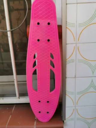 Patinete de color rosa, perfecto para iniciarse en el skate. - Diseño llamativo y juvenil. - Superficie antideslizante para mayor seguridad.