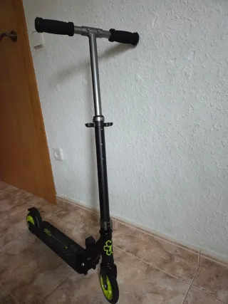 Patinete diseñado para niños de 6 a 10 años. - Color negro con detalles en verde lima. - Manillar ajustable en altura. - Ruedas de goma para un mejor agarre.