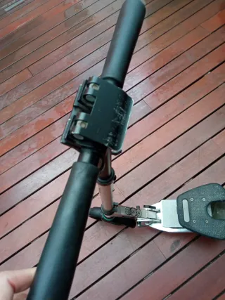Patinete Oxelo Town 5XL en color gris. Sirve para adultos y para niños, de hecho lo utilizaba mi hijo. Es ideal para desplazamientos urbanos. - Plataforma ancha para mayor comodidad. - Ruedas grandes para un rodaje suave. - Manillar ajustable en altura.