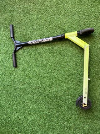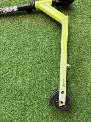 Patinete infantil de dos ruedas, ideal para niños. Se encuentra en buen estado y es fácil de plegar para guardarlo. - Diseño ligero y resistente. - Plegable para facilitar su transporte y almacenamiento. - Ruedas resistentes.