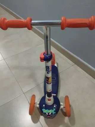 Patinete infantil con diseño de graffiti. Está en buen estado y listo para usar,ld faltan los puños - Diseño colorido y llamativo. - Ideal para niños y niñas. - Tres ruedas para mayor estabilidad.