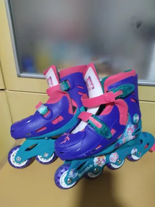 Patines de la película Frozen, ideales para niñas. Son ajustables para adaptarse al crecimiento. - Diseño inspirado en Frozen. - Ajuste rápido y sencillo. - Se pueden usar como patines de 3 ruedas (triskates) o en línea.