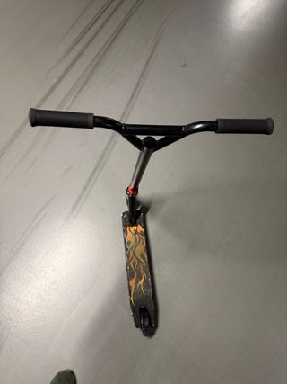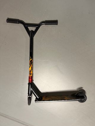 Patinete diseñado para niños, con un estilo llamativo. - Manillar con puños negros. - Diseño de llamas en el mástil y la base. - Ruedas negras . Patinete Freestyle - Scooter para Niños y Niñas Entre 8 y 12 años - Tanto para Principiantes como para Expertos - Patinete de Acrobacias Land Surfer