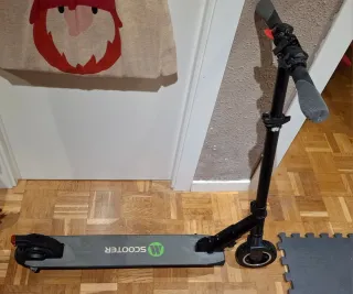 Patinete Joxiu en color negroy azul. Usado, pero en muy buen estado. - Plegable y muy resistente. - Para niños de hasta 50 kg. - Plataforma antideslizante. - Ruedas de color azul. - Manillar ajustable. Comprado en El Corte Inglés. Entrego en mano en el centro de Madrid (zona Lavapiés-Embajadores)