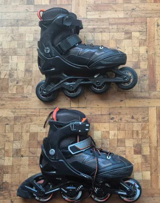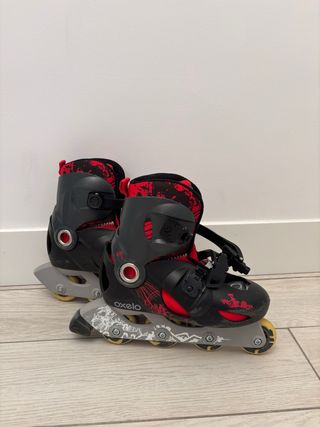 Patines en línea Oxelo para niños, talla ajustable de 34 a 36. Perfectos para iniciarse en el patinaje y para que les aguanten mientras crecen ya que la talla es ajustable. - Diseño en color negro y rojo. - Cierres súper cómodos, rápidos y fáciles de poner.