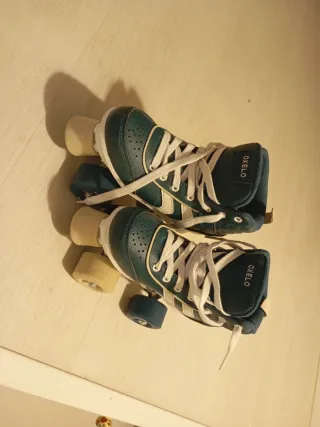Se venden patines Oxelo en color verde y blanco, talla 33 Están nuevos. Yo creo que se han usado solo una vez! - Diseño tipo bota alta. - Cierre con cordones. - Ruedas de poliuretano.