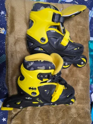 Patines en línea con diseño de Batman para niños. Son ajustables para adaptarse al crecimiento. - Color amarillo y negro. - Estampado de Batman. - Cierre de velcro y hebilla.