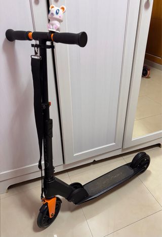 Patinete Tijuana comprado en el Corte Inglés por 90€ con detalles en naranja y azul.Ideal para niños de 8/10años - Manillar con puños negros. - Plataforma antideslizante. - Rueda delantera con guardabarros y freno.