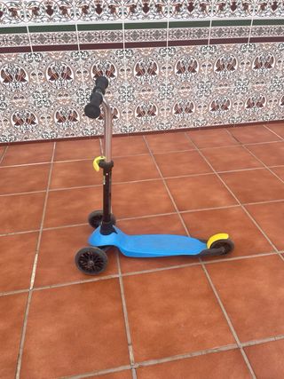 Patinete de tres ruedas de Decathlon, ideal para niños. Se encuentra en buen estado. - Color azul, se regala otra base de color rosa para poder cambiar. - Diseño de tres ruedas para mayor estabilidad.