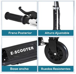 Un sólo uso en Papa Noel de 2025 pero le da miedo y no quiere cogerlo. Patinete eléctrico de la marca HOMCOM, diseñado para niños mayores de 7 años. Su estructura es de color negro y cuenta con un diseño moderno. - Manillar ajustable en altura. - Plataforma antideslizante. - Ruedas resistentes.