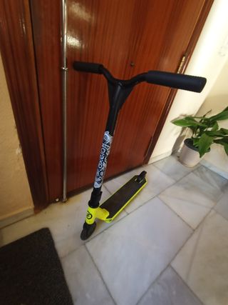 Patinete diseñado para la práctica de freestyle, ideal para niños. - Color principal: amarillo. - Manillar y base en color negro. - Ruedas de goma.