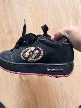 Vendo un par de zapatillas Heelys para niño, en color negro. Están en buen estado, aunque presentan señales normales de uso. - Modelo: Heelys - Color: Negro con detalles rosas - Ideales para niños - Talla 31