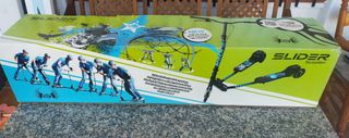Patinete Slider de 3 ruedas, ideal para niños a partir de 8 años y adultos. Su diseño permite un deslizamiento divertido y seguro. - Color negro con detalles en azul. - Ruedas de alta resistencia. - Manillar ajustable.