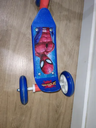 Patinete infantil con diseño de Spiderman, ideal para niños de 3 a 5 años. Perfecto para iniciarse en el mundo del patinaje. - Manillar ajustable en altura. - Ruedas de goma para un mejor agarre. - Plataforma antideslizante. - Usado tres veces. - Avisar a móvil: 677434960