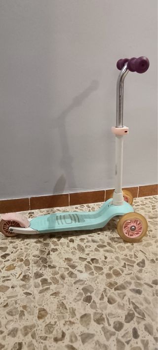 Patinete de tres ruedas en color rosa, ideal para niñas. Se encuentra en buen estado. - Diseño de tres ruedas para mayor estabilidad. - Manillar ajustable. - Plataformas antideslizantes.