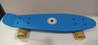 Monopatín infantil de color azul, perfecto para iniciarse en el skate. - Diseño clásico. - Ruedas amarillas. -1 sólo uso, como nuevo - medidas 55*16 Nuevo en tienda 25€