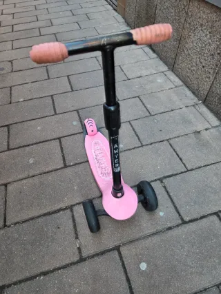Patinete dos ruedas en color rosa, ideal para los más pequeños. - Para niños a partir de 7 años. - Ruedas grandes para mayor estabilidad. - Manillar ajustable en altura. - Plataforma antideslizante.