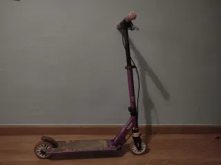 Patinete ideal para niños. Ajustable en altura, con patilla para dejarlo de pie y freno trasero.