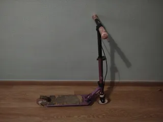 Patinete de dos ruedas en color morado, plegable, fácil de transportar. - Manillar ajustable en altura. - Plegado sencillo. - Ruedas de goma para un mejor agarre. - Plataforma antideslizante.