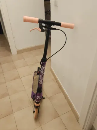 Patinete MID 5 morado, ideal para niñ@s de 6 a 9 años, equipado con freno en el manillar para controlar mejor y más fácilmente la velocidad, y con suspensión delantera para mayor comodidad. Nivel de práctica, para todos los niveles. Frecuencia de uso regular. Con caballete y doble freno en manillar y rueda trasera. Plegable con asa para transportar, peso 4 kg. Rueda maciza de 125 mm. Edad recomendada de 6 a 9 años, peso usuari@ de 0 a 70 Kg. Patinete cuidado pero con signos de uso. Ver fotos. Se hacen en envios, pero prefiero venta en persona para que se vea "in situ" antes de comprar.