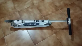 Patinete Micro Maxi original en color gris, ligero, estable y de excelente calidad. Usado, en muy buen estado, con todo funcionando perfectamente. Manillar regulable en altura y sistema de giro por inclinación, ideal para que los niños mantengan el equilibrio con facilidad. Freno trasero en buen estado y ruedas suaves. Perfecto para uso diario y para niños/as a partir de aproximadamente 5 años. Listo para usar.