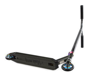 Patinete Freestyle Bloody Mary V2 de Versatyl. Patinete perfecto tanto para empezar a hacer trucos en el parque como para simplemente patinar e iniciarse en el mundo del patinete. Recomendado para niños entre 6 y 10 años. -Altura del suelo al manillar 83,5 cm. – Base de 51cm x 11,8cm – Manillar de aluminio 6061 T6 (540 mm de ancho / 600 mm de alto) – Ruedas de aluminio de 110mm. – Sistema de compresión IHC. – Horquilla de acero 4130 cr. – Peso 2.940 kg