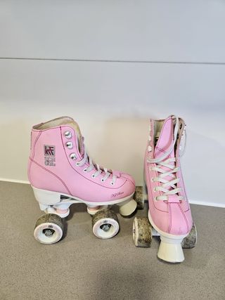 Patines de cuatro ruedas en color rosa, para niña, talla 31. Cuentan con freno delantero. Usados, se la han quedado pequeños y los ha probado en muy pocas ocasiones. - Color: Rosa - Talla: 31 - Número de ruedas: 4 - Freno: Sí